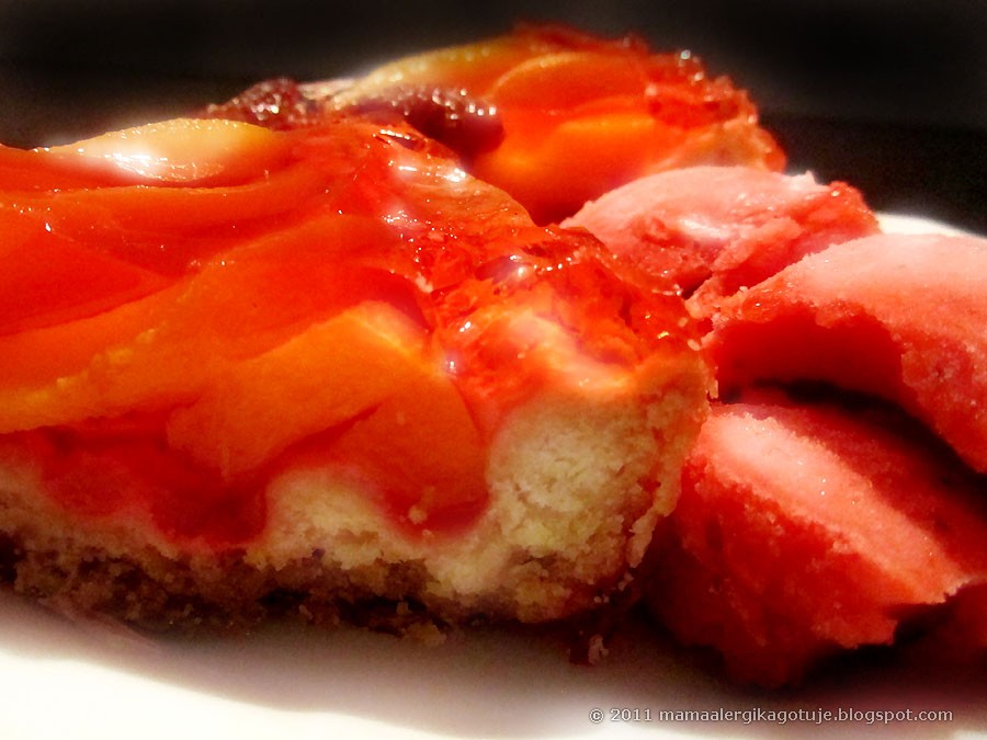Bardzo lubię ciasta z galaretką, co jest pocieszające, gdyż brakuje mi mazi w kolanie i galaretka jest na to jedynym lekarstwem 😀